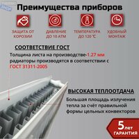 | Подробная комплектация | Радиатор в упаковке – 1 шт.; Сантехническая нить -1 шт.; Паспорт- 1 шт; Кронштейны для крепления – 2 шт. (радиаторы длиной 1700 мм и выше – 3 шт.); Комплект монтажный: Воздухоотводчик 1/2" под отвертку с крючком– 1 шт.; Заглушки 1/2" – 1 шт. в радиаторах с боковым подключением; Шуруп и дюбель – 4 шт радиаторы длиной 1700 мм и выше – 6 шт.); Пластиковый фиксатор-прокладка – 4 шт радиаторы длиной 1700 мм и выше – 6 шт.). |