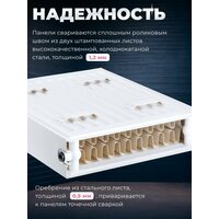 Оребрение из стального листа, толщиной 0,5 мм, приваривается к панелям точечной сваркой, обеспечивая абсолютную надежность и долговечность. Лакокрасочное покрытие батареи отопления проходит двухэтапный процесс.