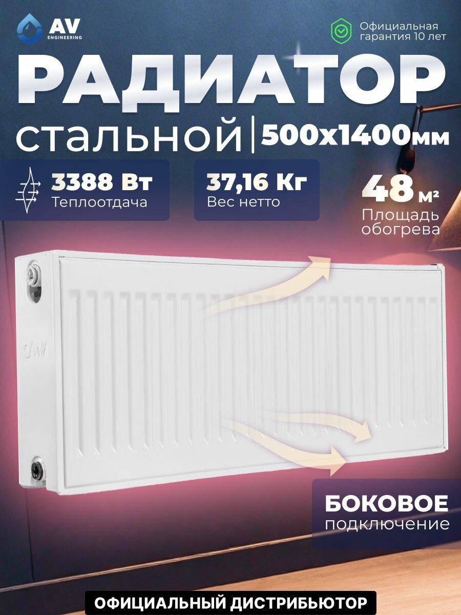 Купить Радиатор отопления стальной панельный AV Engineering Expert ES 22-5-14 500х1400 мм (AVE-22514S) с доставкой по всей России.