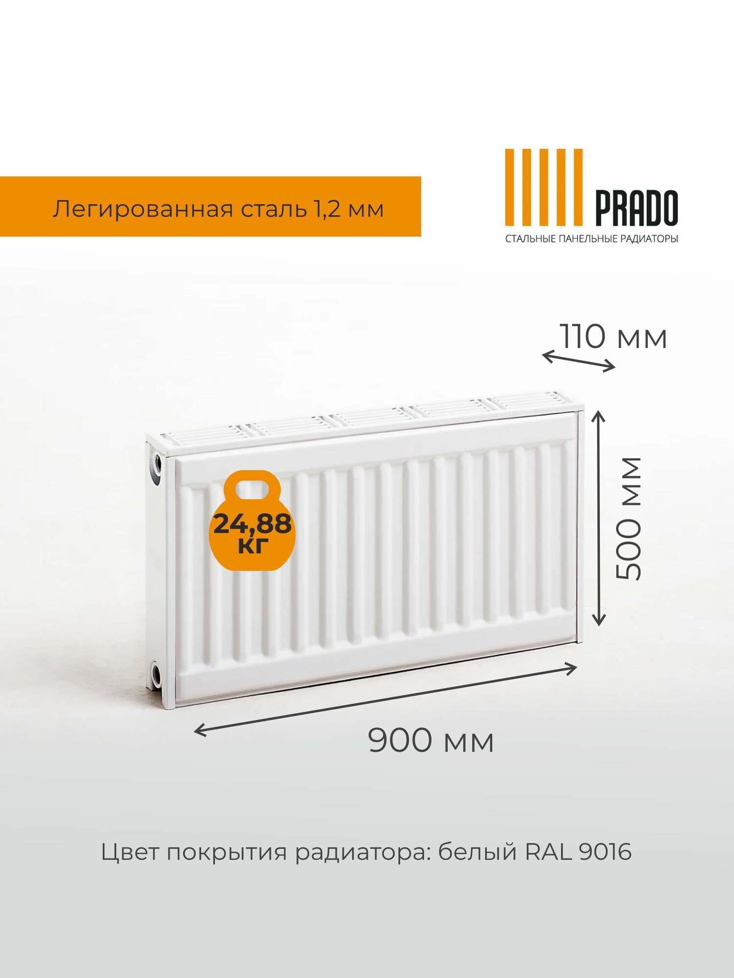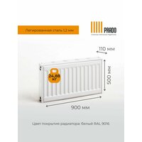 Купить Радиатор стальной PRADO Classic 22/500/900 1956 Вт боковое подключение (+2 кронштейна) с доставкой по всей России.
