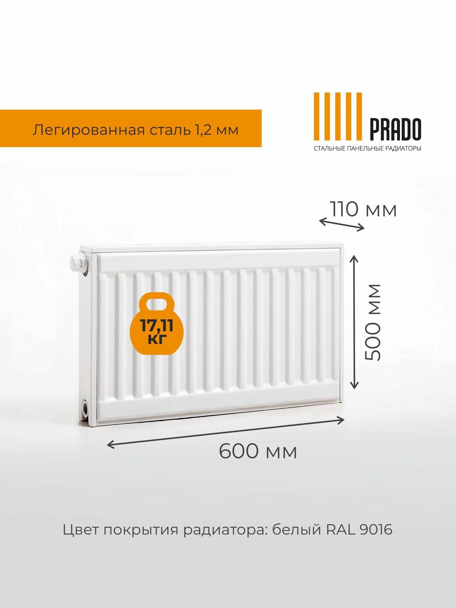 Радиатор стальной PRADO Universal 22/500/600 1290 Вт нижнее/боковое подключение (+2 кронштейна): сравнение цен, характеристики, фото, актуальное наличие и цены.