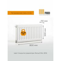 Купить Радиатор стальной PRADO Universal 22/500/800 1734 Вт нижнее/боковое подключение (+2 кронштейна) с доставкой по всей России.