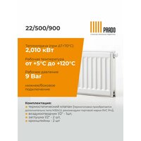 Купить Радиатор стальной PRADO Universal 22/500/900 1956 Вт нижнее/боковое подключение (+2 кронштейна) с доставкой по всей России.