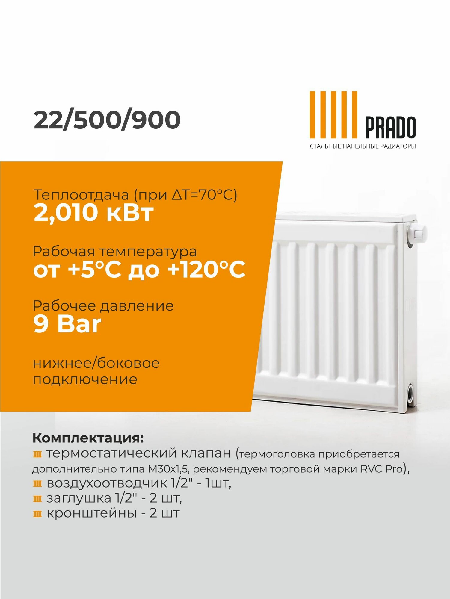 Радиатор стальной PRADO Universal 22/500/900 1956 Вт нижнее/боковое подключение (+2 кронштейна): сравнение цен, характеристики, фото, актуальное наличие и цены.