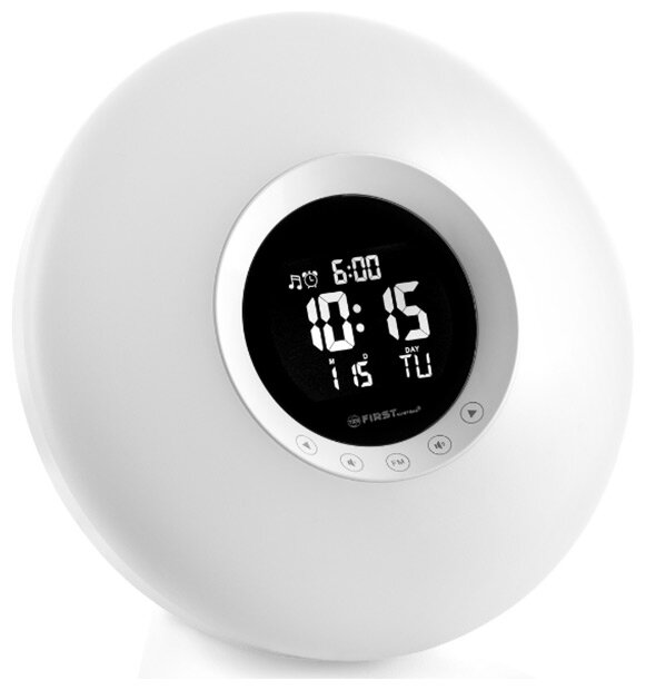 Описание Радиочасов FIRST FA-2420-3 Радиочасы FIRST FA-2420-3 с будильником круглой формы оснащены функцией "прикроватная лампа". Часы показывают время, дни недели, можно выбрать календарь на текущий год, настроить радиостанцию. Будильник работает с повтором. Корпус выполнен из прочного легкого пластика. Присутствует функция плавного изменения цвета символов. Питание от сети или от батареек. Подсветка позволяет выставить функцию включения будильника с имитацией восхода солнца. В настройках можно выбрать одну из шести мелодий и зуммер. Особенности
