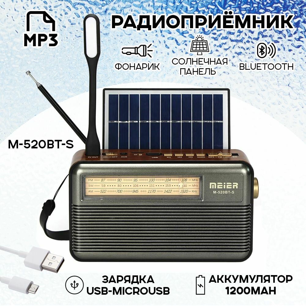 Купить Радиоприемник Meier M-520BT-S с солнечной панелью / радио с Bluetooth, microSD, USB для флешки, цвет — хаки с доставкой по всей России.