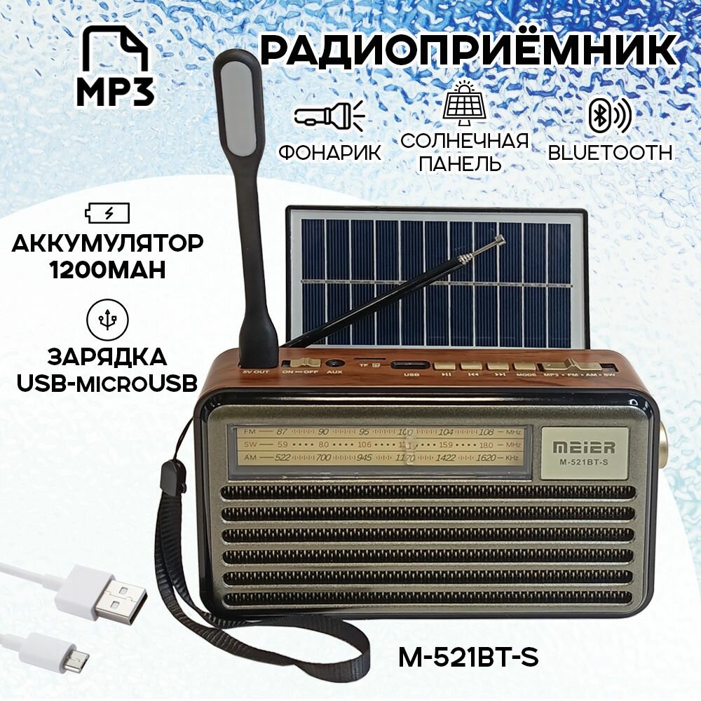 Радиоприемник M-521BT-S с солнечной панелью, Bluetooth, mp3, USB для флешки, micro SD, цвет — темно-серый: сравнение цен, характеристики, фото, актуальное наличие и цены.