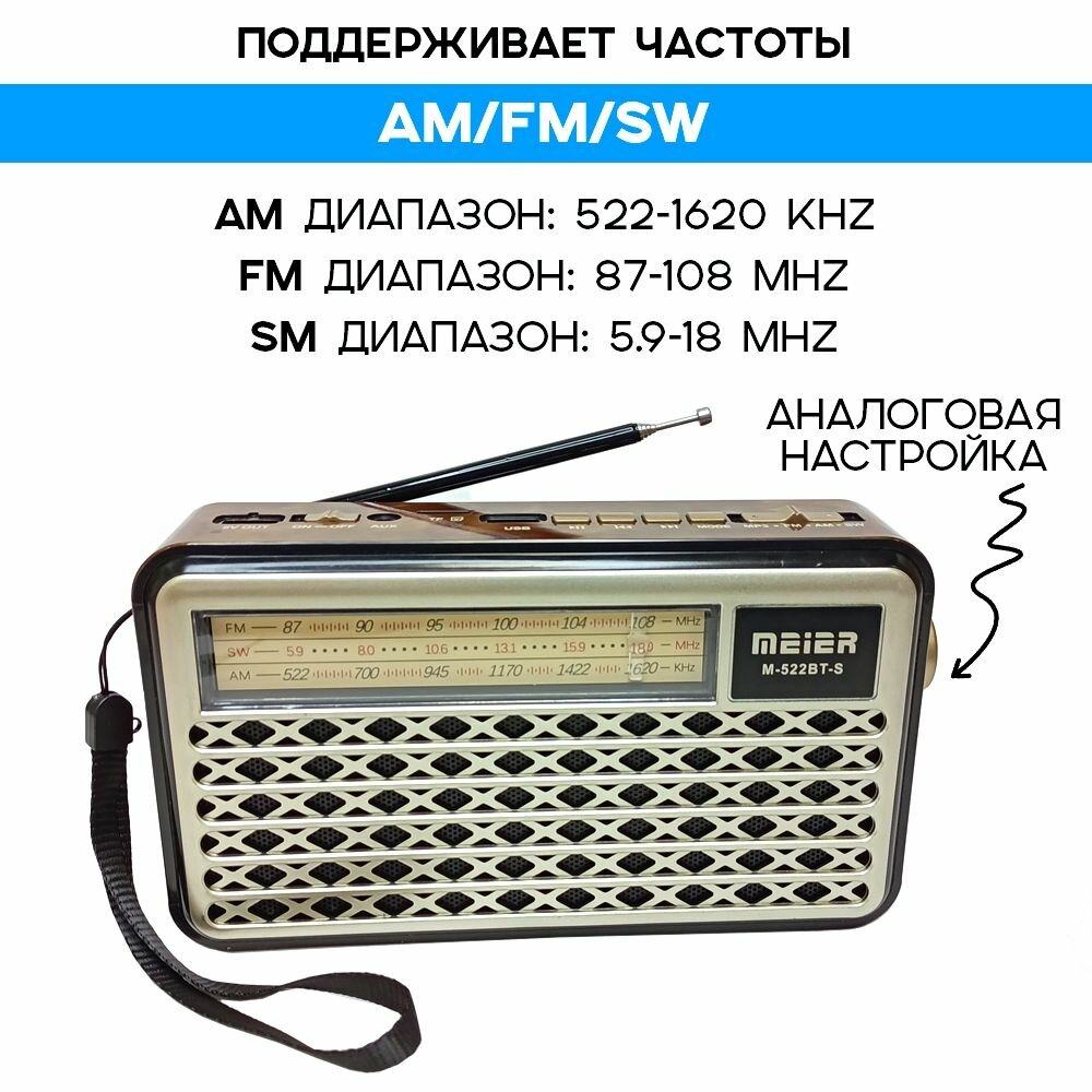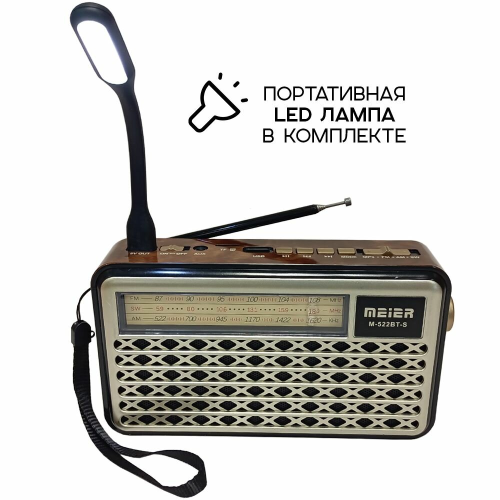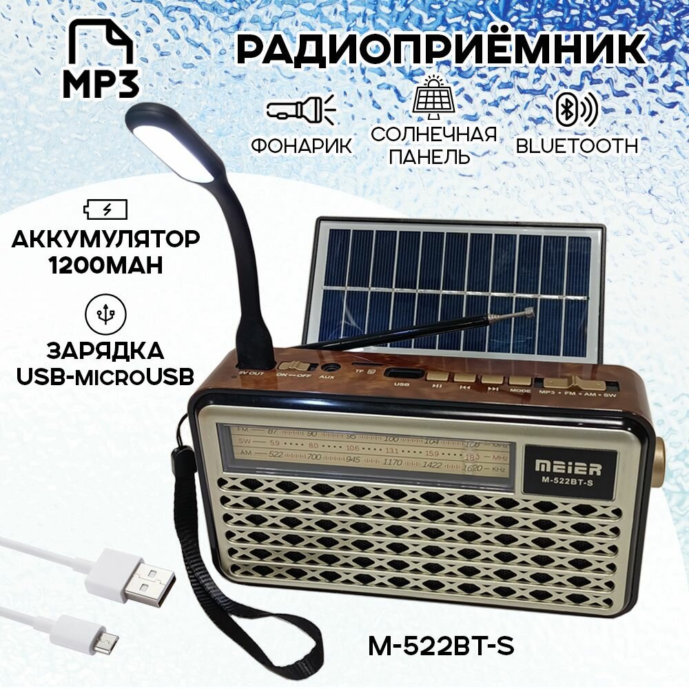 Радиоприемник Meier M-522BT-S с солнечной панелью / радио с Bluetooth, microSD, USB для флешки, цвет — золотистый: сравнение цен, характеристики, фото, актуальное наличие и цены.