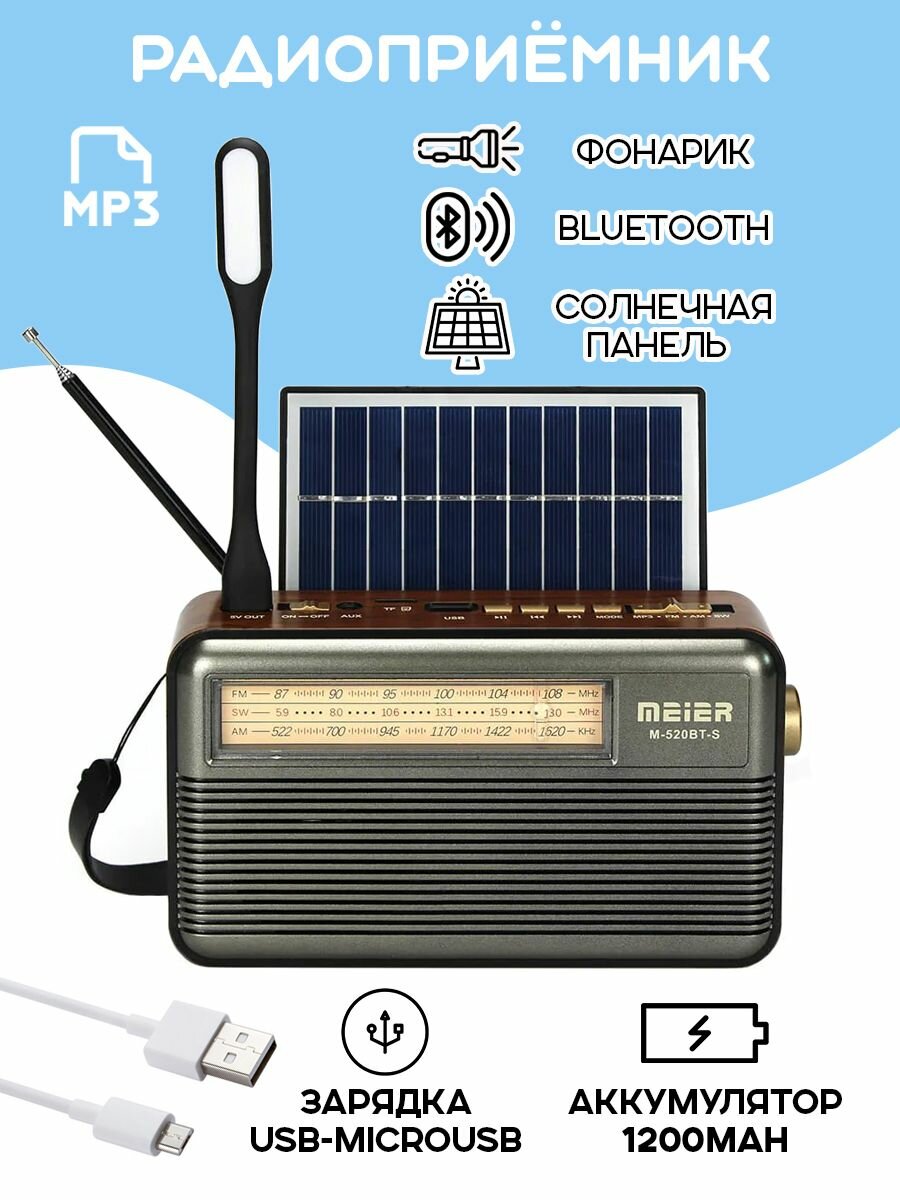 Купить Радиоприемник Meier M-520BT-S с солнечной панелью / радио с Bluetooth, microSD, USB для флешки, цвет — хаки с доставкой по всей России.