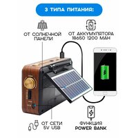 Радиоприемник Meier M-520BT-S с солнечной панелью / радио с Bluetooth, microSD, USB для флешки, цвет — хаки