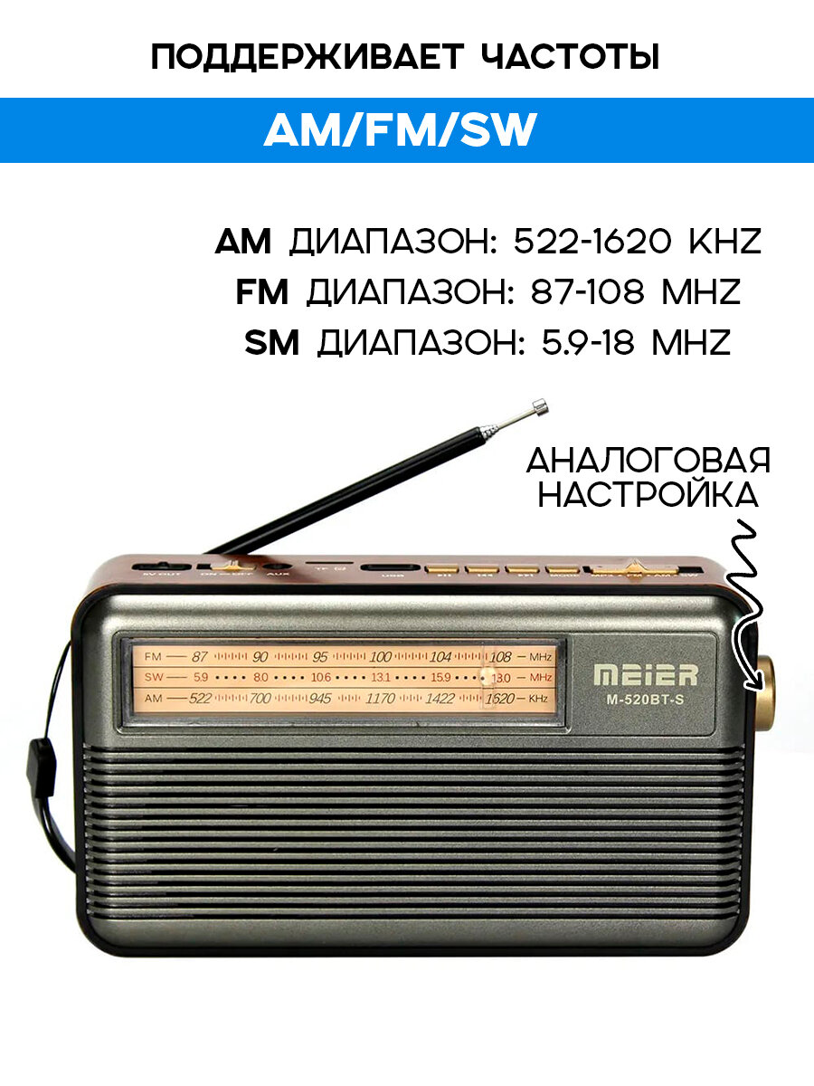 Радиоприемник Meier M-520BT-S с солнечной панелью / радио с Bluetooth, microSD, USB для флешки, цвет — хаки: сравнение цен, характеристики, фото, актуальное наличие и цены.