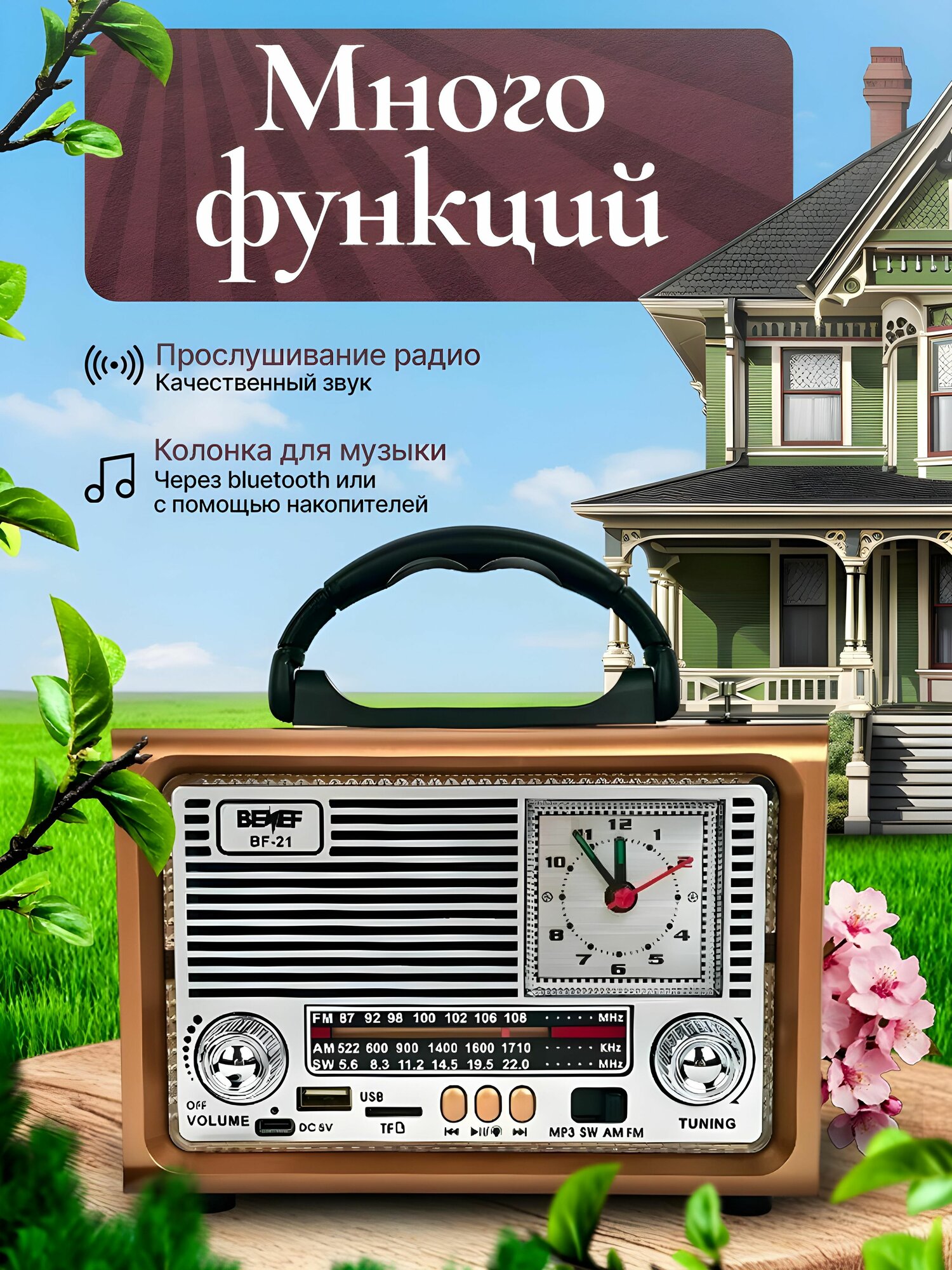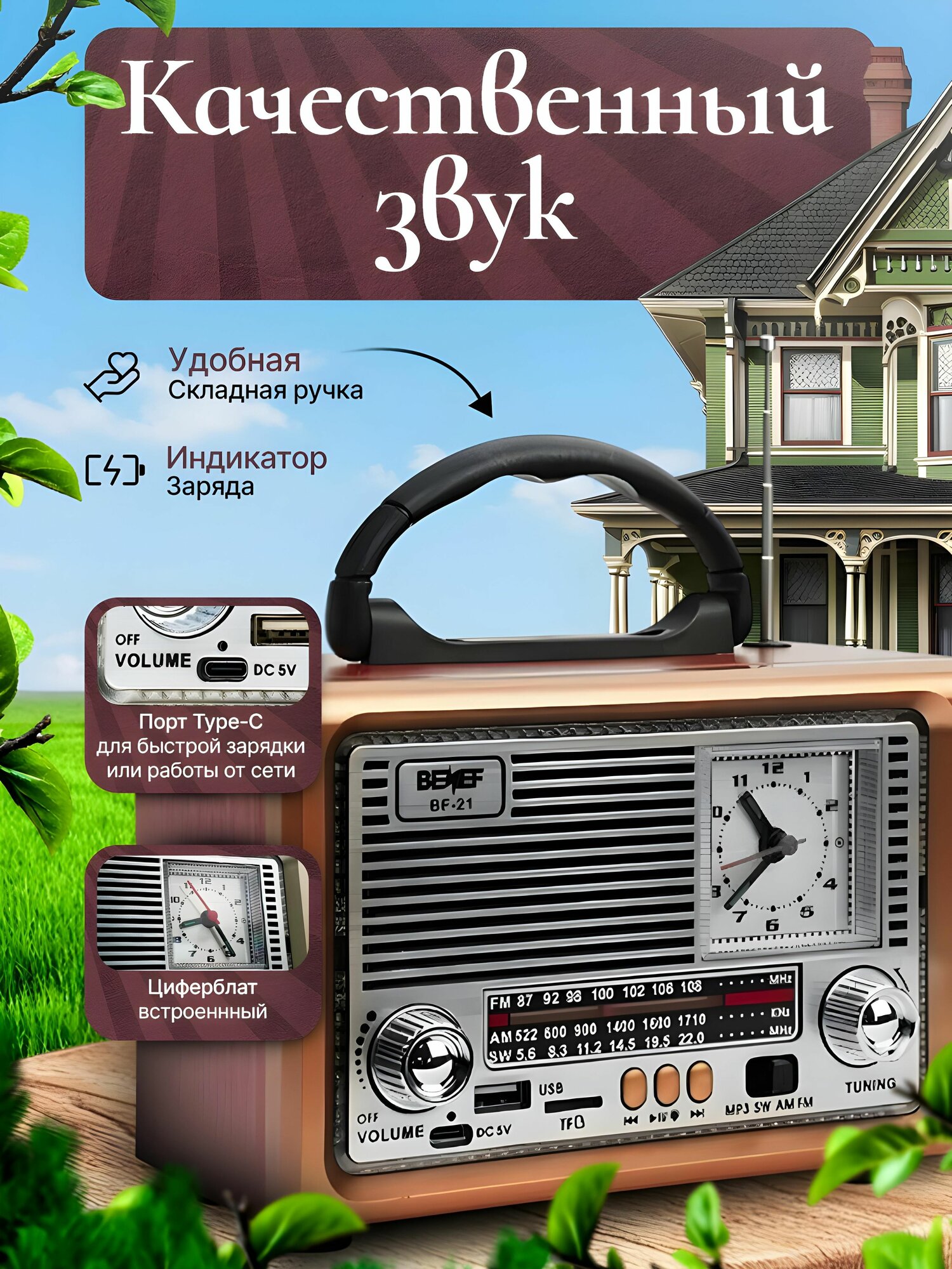 Ретро радиоприемник BENEF - это сочетание классического дизайна и современных технологий. Он предназначен для любителей качественного звука и удобства использования.