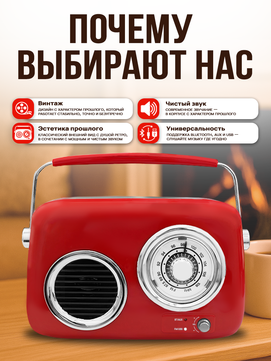 Купить Радиоприемник ретро аккумуляторный с Bluetooth, USB и AUX, красный с доставкой по всей России. Радиоприемник ретро аккумуляторный с Bluetooth, USB и AUX, красный: сравнение цен, характеристики, фото, актуальное наличие и цены.