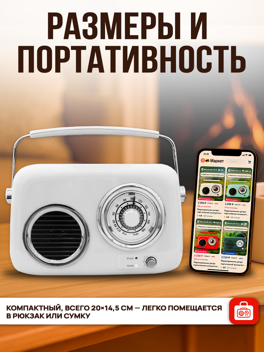 Ретро-дизайн приемника гармонично сочетается с его функциональностью. Радиоприёмник поддерживает широкий диапазон частот, что позволяет ловить как местные, так и международные радиостанции. Портативный характер устройства позволяет легко переносить его и использовать в любом удобном месте, не зависимо от наличия сети.