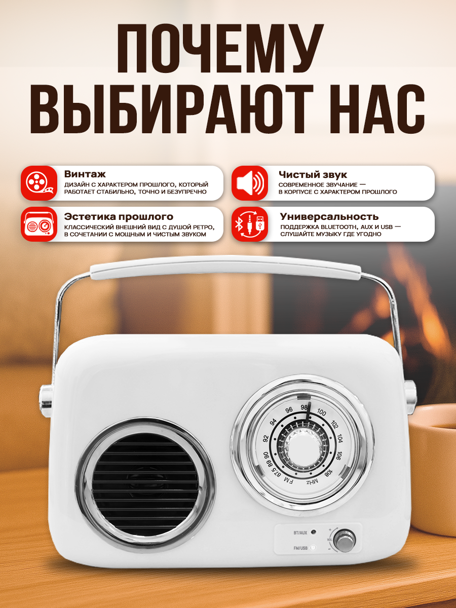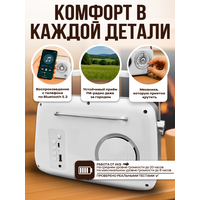 Радиоприемник в ретро-стиле — это идеальное сочетание классического дизайна и современных технологий. Этот портативный радиоприёмник оснащён функцией Bluetooth, что позволяет подключаться к различным устройствам без использования проводов. Радио поддерживает воспроизведение через USB и AUX, что расширяет возможности использования устройства в различных сетях.
