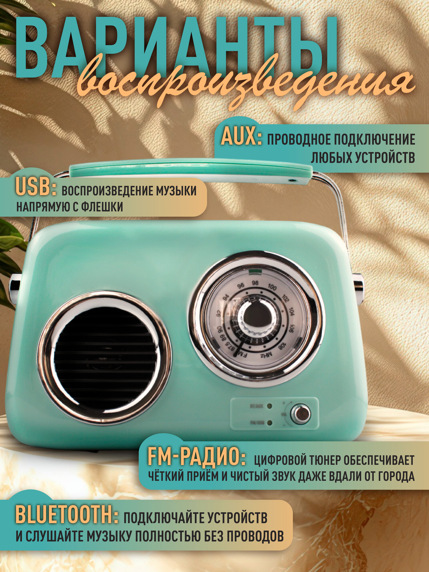 Купить Радиоприемник ретро аккумуляторный с Bluetooth, USB и AUX, мятный с доставкой по всей России. Радиоприемник ретро аккумуляторный с Bluetooth, USB и AUX, мятный: сравнение цен, характеристики, фото, актуальное наличие и цены.