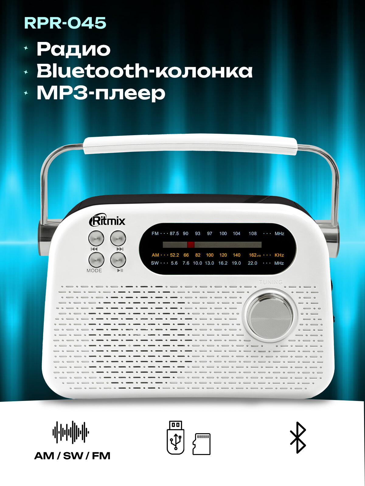 Купить Радиоприемник RITMIX RPR-045 WHITE, Bluetooth v.5.4, Music/FM/AM/SW с доставкой по всей России. Радиоприемник RITMIX RPR-045 WHITE, Bluetooth v.5.4, Music/FM/AM/SW: сравнение цен, характеристики, фото, актуальное наличие и цены.