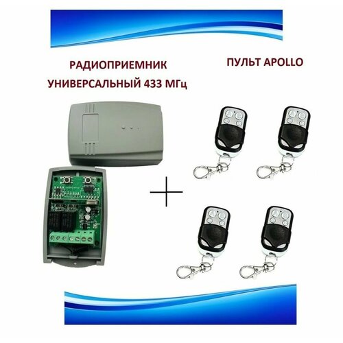 Радиоприемник внешний универсальный 2-х канальный для ворот и шлагбаумов на 433,92МГц + 4 пульта Apollo: сравнение цен, характеристики, фото, актуальное наличие и цены.
