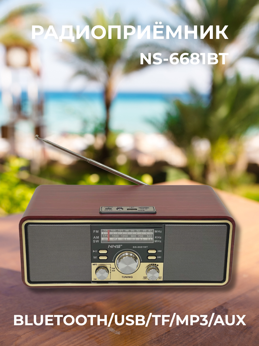 Многофункциональный радиоприемник NS-6681BT в ретро-стиле — это стильное и практичное устройство 3-в-1: радио, Bluetooth-колонка и медиаплеер. Поддержка USB, microSD, AUX и Bluetooth 5.0 делают его отличным решением для дачи, пикника, путешествий или просто прослушивания любимой музыки дома.
