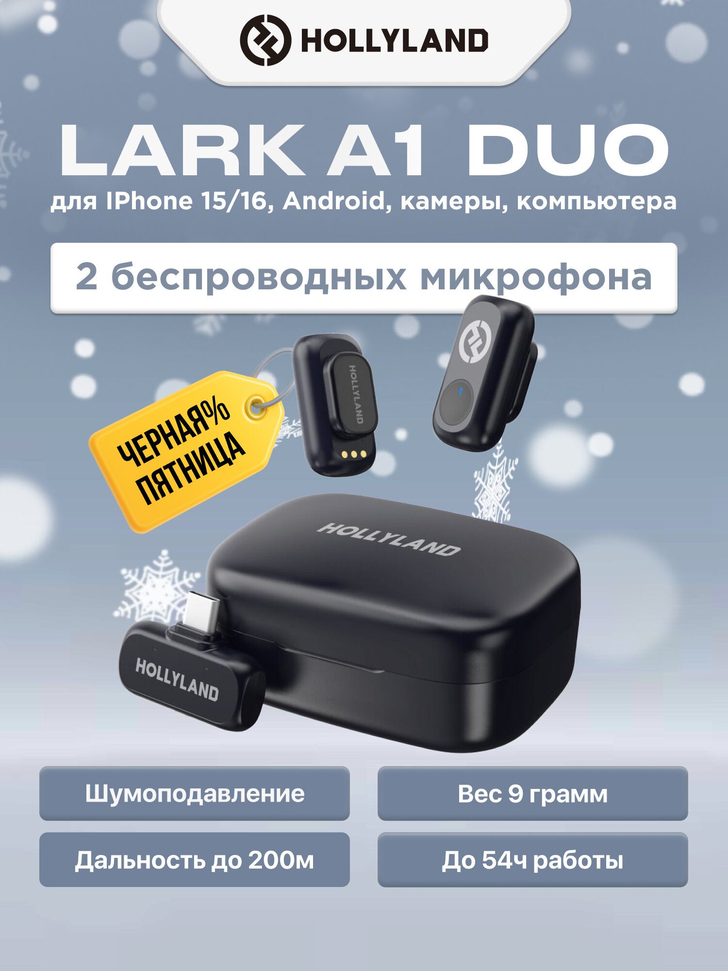 Радиосистема Hollyland Lark «A1 Duo» чёрная, петличная, шумоподавление