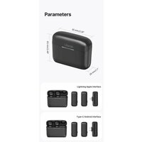 | Дополнительная информация | - Тип подключения Type-C, что является широко распространенным подключением среди телефонов Андройд - Рабочая дистанция до 20 метров - Примерное время работы 7 часов - Задержка звука не более 25 мс - Емкость аккумулятора передатчика: 80 мАч - Аккумулятор кейса: 800 мАч - Моно запись звука - Дистанционное управление - Адаптер: 5 В/1 А |