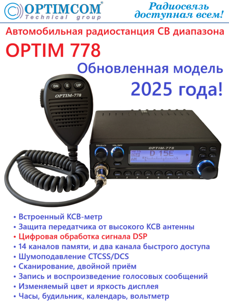 Купить Радиостанция автомобильная СВ OPTIM 778 (версия 2025 г.) с доставкой по всей России. Радиостанция автомобильная СВ OPTIM 778 (версия 2025 г.): сравнение цен, характеристики, фото, актуальное наличие и цены.