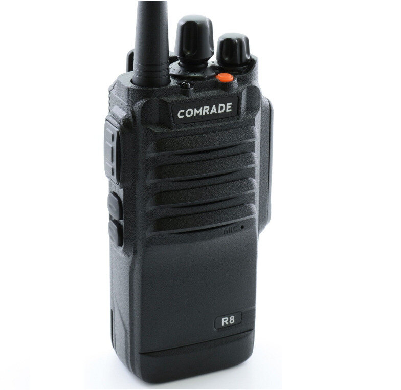 | Дополнительная информация | Профессиональная радиостанция Comrade R8 — надёжное устройство, выполненное в стильном сдержанном дизайне, которое никогда не подведёт. Радиостанция имеет режим экономии заряда аккумуляторной батареи, о разрядке батареи оповестит звуковой сигнал. Также предусмотрена кнопка вызова экстренных служб. Класс защиты IP67 обеспечивает стабильную работу радиостанции в экстремальных условиях, а также при высокой влажности. Радиостанция остаётся в рабочем состоянии даже при падении в воду: выдерживает до 30 минут на глубине до 1 метра. |