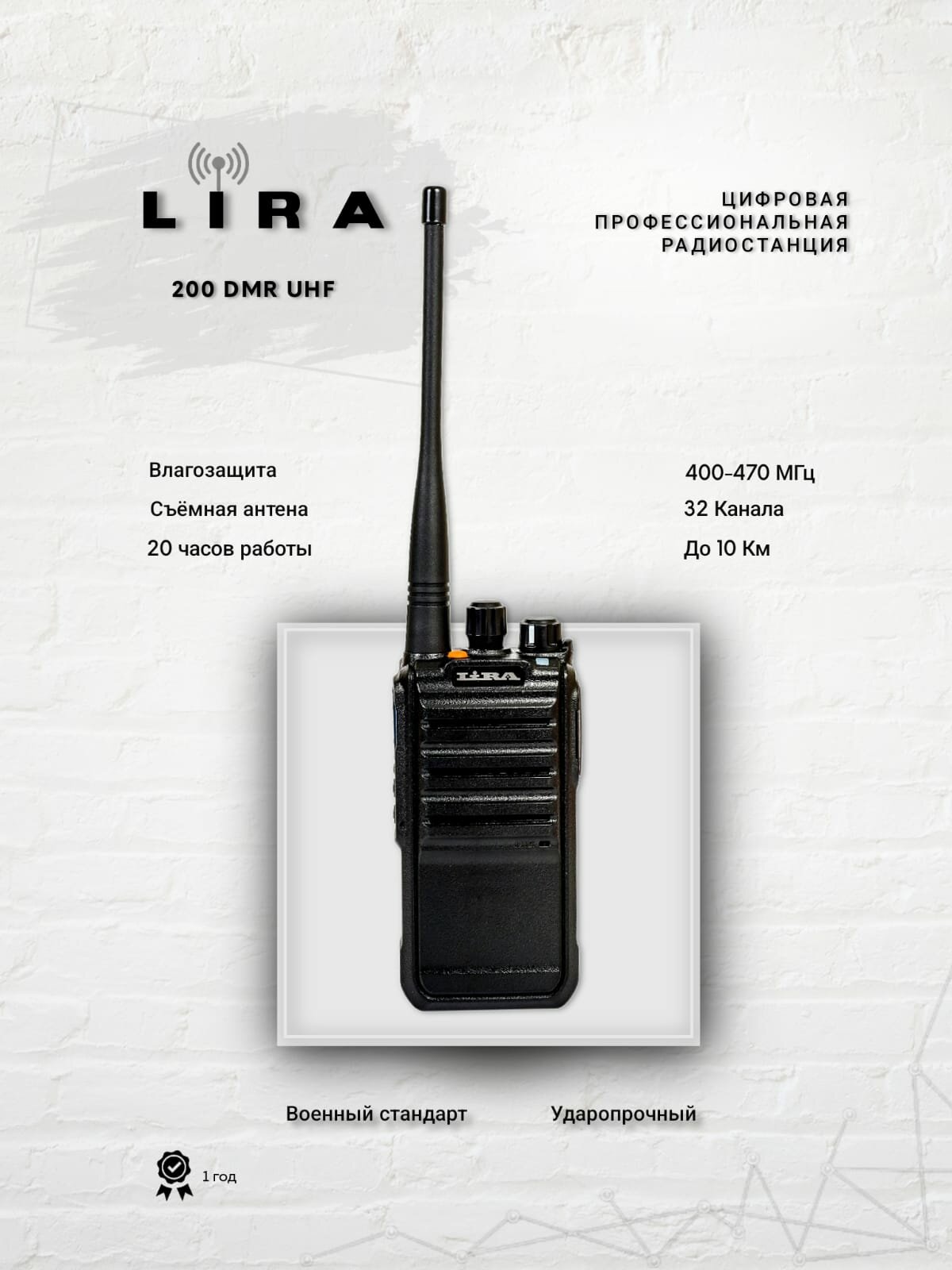 Радиостанция LIRA DP-200, DMR, аналоговый и цифровой режим, 32 канала, 2300мАч, IP67: сравнение цен, характеристики, фото, актуальное наличие и цены.