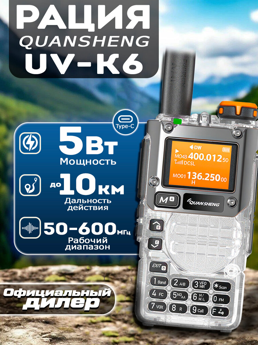 Радиостанция Quansheng UV-K6 / UV-K5(8), 5W, 200 каналов, Цвет Прозрачный: сравнение цен, характеристики, фото, актуальное наличие и цены.