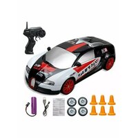 Радиоуправляемая машина для дрифта Bugatti Veyron (19 см, 15 км/ч, сменные колеса, фишки) - SC24A10 - это машина, которая предназначена для дрифта. Она имеет полный привод и выполненная в масштабе 1:24. Машинка управляется при помощи пульта ДУ, работающего на частоте 2,4 ГГц. В наборе также поставляются комплект запасных колес, дорожные конусы, зарядное устройство и аккумулятор. Во время движения у машинки светятся фары.