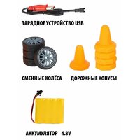 | Комплектация | машинка, пульт управления, аккумулятор, зарядное устройство, 6 конусов, 4 запасных колеса, инструкция |