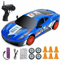 Радиоуправляемая машина для дрифта Ferrari F430 (19 см, 15 км/ч, сменные колеса, фишки) - SC24A09 - это машина, которая предназначена для дрифта. Она имеет полный привод и выполненная в масштабе 1:24. Машинка управляется при помощи пульта ДУ, работающего на частоте 2,4 ГГц. В наборе также поставляются комплект запасных колес, дорожные конусы, зарядное устройство и аккумулятор. Во время движения у машинки светятся фары.