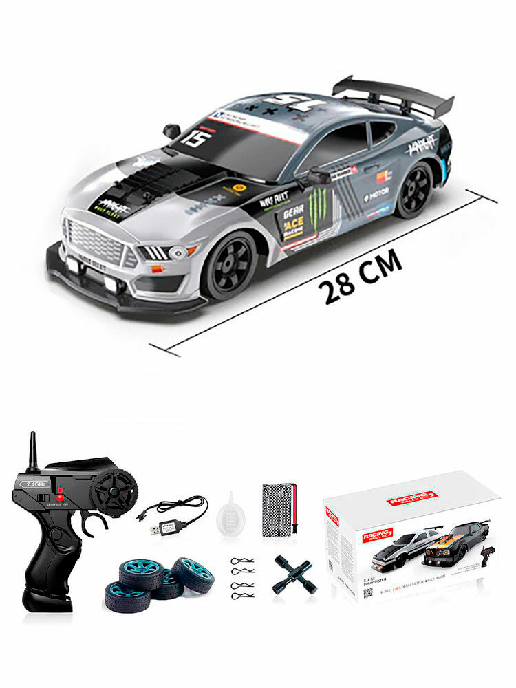 Радиоуправляемая машина для дрифта HB Ford Mustang (4WD, свет, пар, акб, 1:16) - SC16A05-1 - это машина, которая предназначена для дрифта. Она имеет полный привод и выполненная в масштабе 1:16. Машинка управляется при помощи пульта ДУ, работающего на частоте 2,4 ГГц. В наборе также поставляются комплект запасных колес, ключ для смены колес, зарядное устройство и аккумулятор. Во время движения у машинки светятся фары и можно активировать спрей-пар из выхлопной трубы.