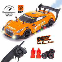 Радиоуправляемая машина для дрифта Nissan GTR R35 (свет, пар, 4WD 1:14) - RC-18D-1 - это обновленная версия радиоуправляемой модели Nissan GTR R35 для дрифта с приводом на все 4 колеса, паром и яркой подсветкой фар и днища автомобиля, которая несомненно понравится фанатам гонок и автомобилей. Восторг от управления этой машиной ждёт каждого, кто возьмёт в руки пульт! Во время движения у машинки светятся фары и можно активировать спрей-пар из выхлопной трубы.