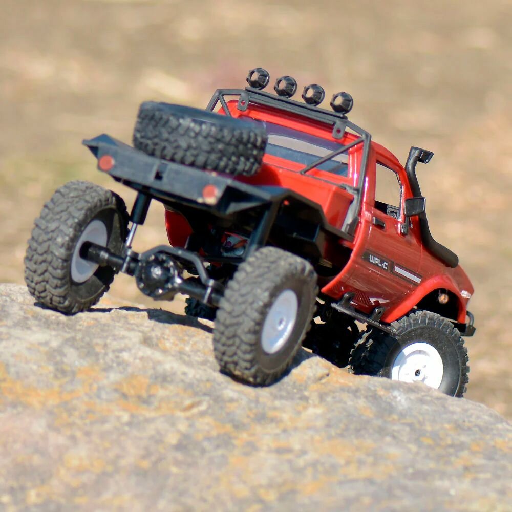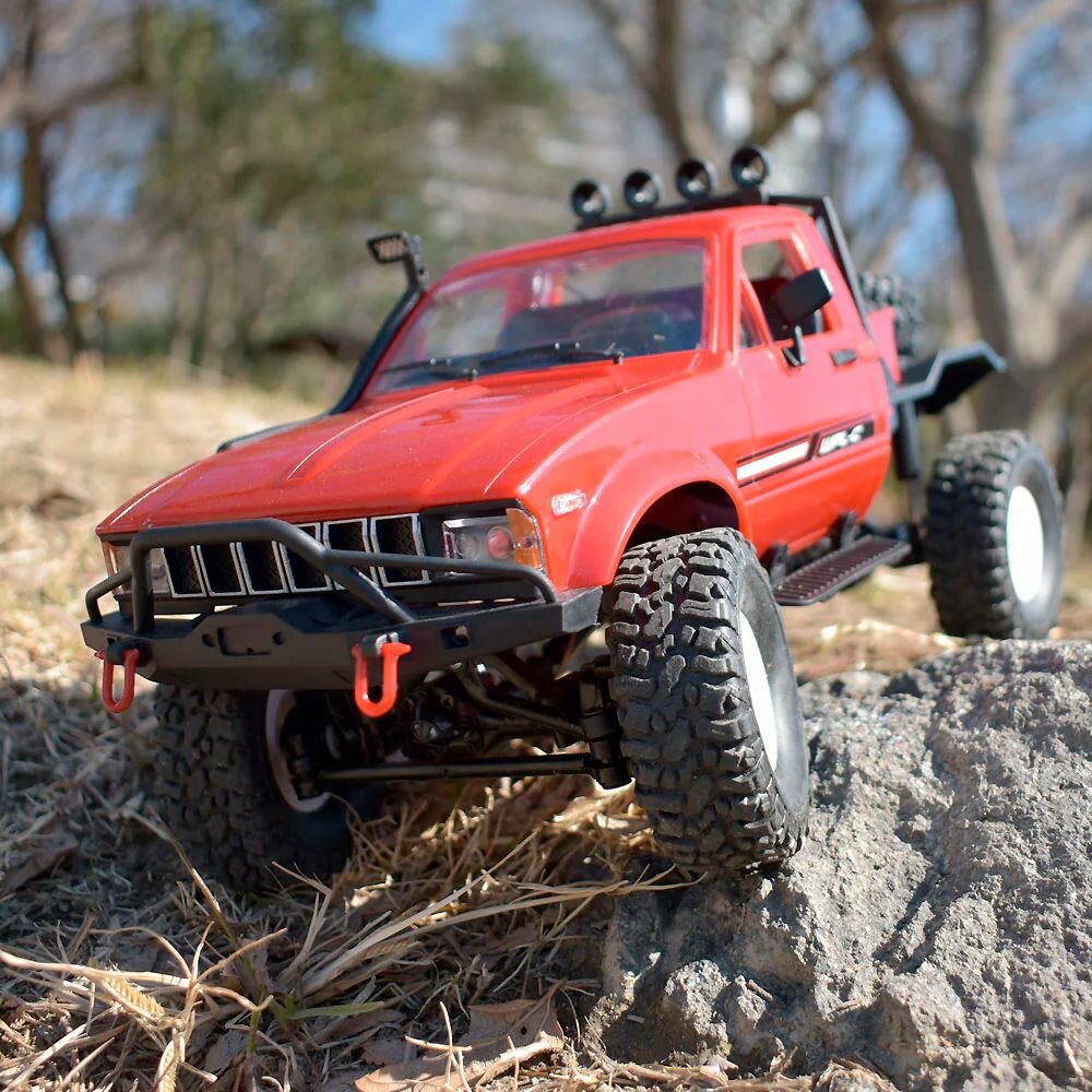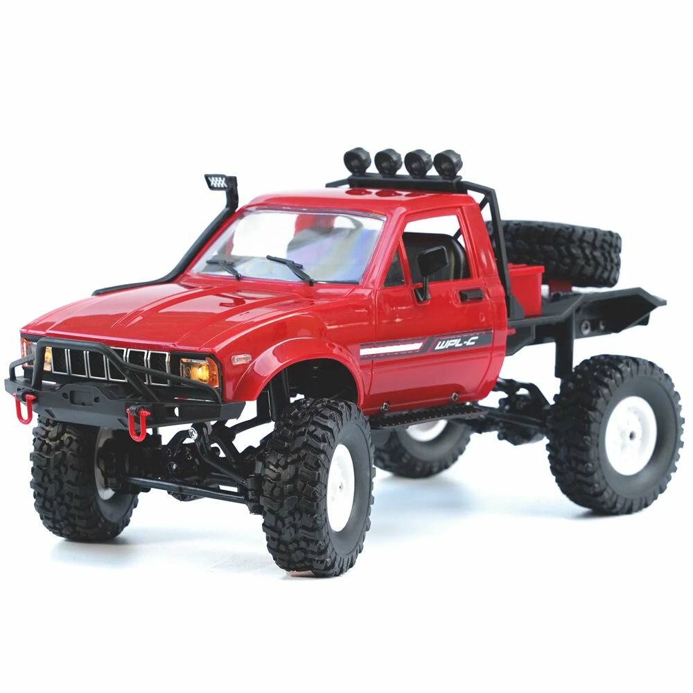 Радиоуправляемая машина WPL пикап Hilux (красный) 4WD 2.4G 1:16 RTR - WPLC-14-RED - это радиоуправляемый внедорожный джип 1/16, оснащен полным приводом, действующей рессорной подвеской как у моделей 'краулер' и мощным коллекторным электромотором. Внедорожник выпускается в различных вариантах окраски, имеет богатую деталировку и светящиеся передние фары. В кабине можно увидеть сиденья, руль и интерьер. Кабина изготовлена из прочного АВS пластика и установлена на металлическую раму. Li-Ion аккумулятор 7.4В 500 мАч спрятан под кабиной. Для установки батареи предусмотрен открывающийся люк.