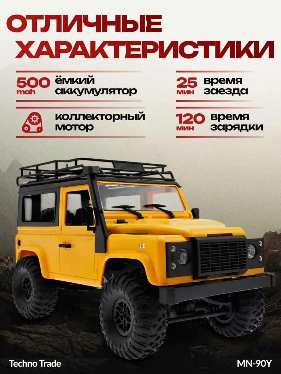 | Подробная комплектация | модель английский внедорожник Defender, аппаратура управления 2.4GHz, аккумулятор Li-Ion 7.4V 500mAh |