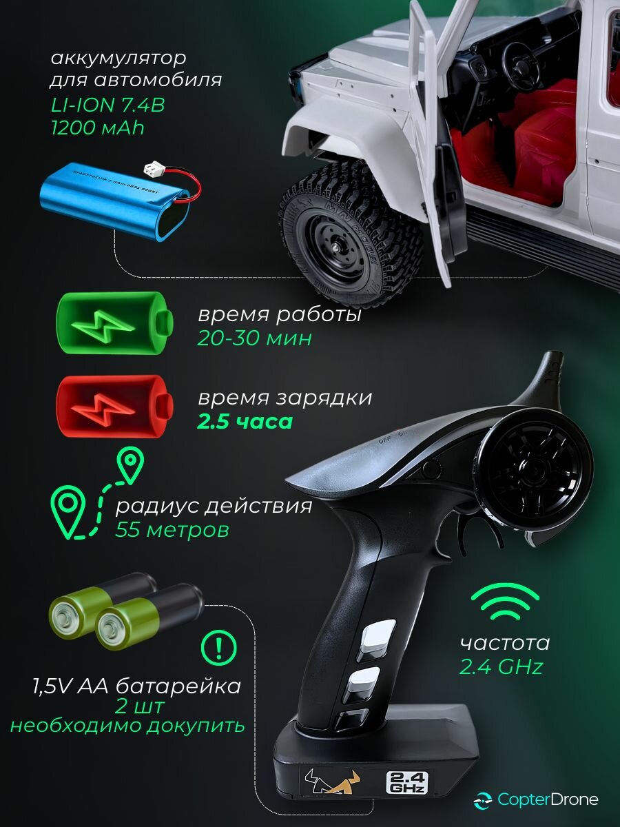 | Комплектация | Внедорожник MN86, Аккумулятор, Пульт дистанционного управления, USB кабель для зарядки, Аксессуары, Руководство пользователя |