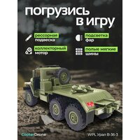 В комплекте имеется полнофункциональный пульт управления, который работает на частоте 2.4ГГц. Дальность управления до 20 метров. После включения питания радиоуправляемый «Урал» по команде с пульта может двигаться вперед и назад, поворачивать влево и вправо.