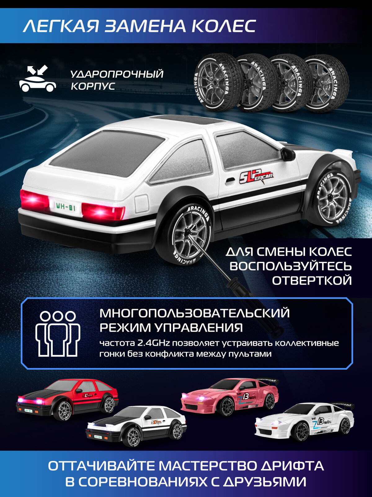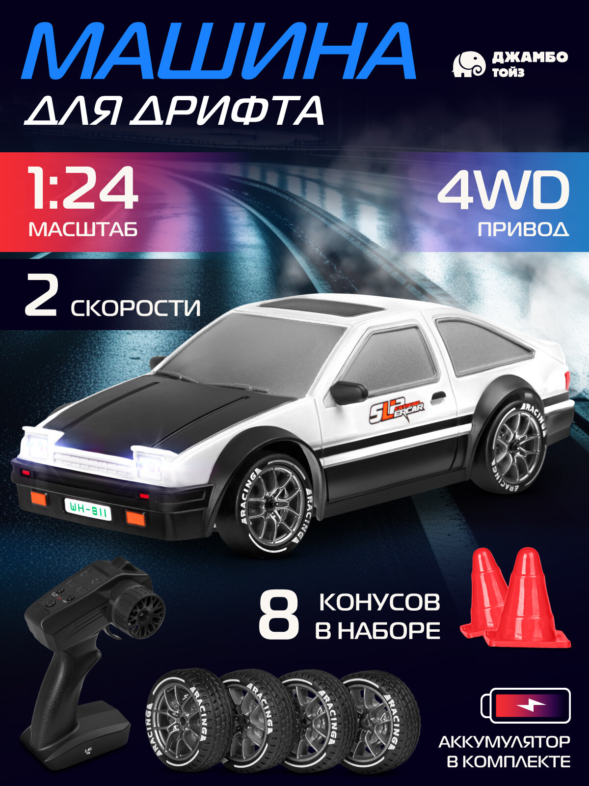 Радиоуправляемая машинка для дрифта, М1:24, 4 запасных колеса/конусы 8 шт, 4WD, свет, JB0405343: сравнение цен, характеристики, фото, актуальное наличие и цены.