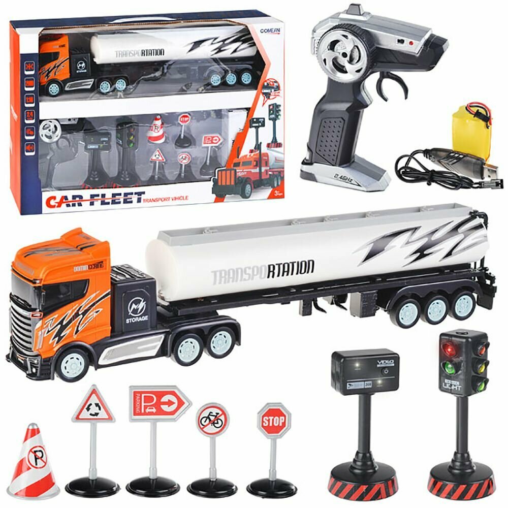 Купить Радиоуправляемый грузовик цистерна и набор дорожных знаков (2WD, акб, 1:16) — GM1927 с доставкой по всей России.