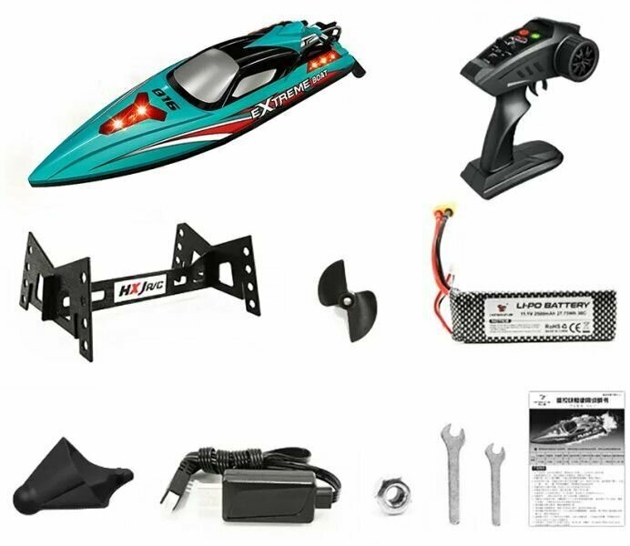 Радиоуправляемый катер Blue Extreme (48 см, 55 км/ч, Brushless, 2.4G) - HJ816PRO-BLUE - это компактная, мобильная, выносливая игрушка очарует даже тех, кто был далек от мира радиоуправляемой техники. Почувствуйте себя отважным мореплавателем и покорителем водной стихии – обратите внимание на катер HJ816PRO Blue от компании HJ Toys! Катер легко справится с волной, несколько раз перевернется, обойдет соперников и придет к финишу первым. Вас порадует невысокая цена и прекрасное качество модели.
