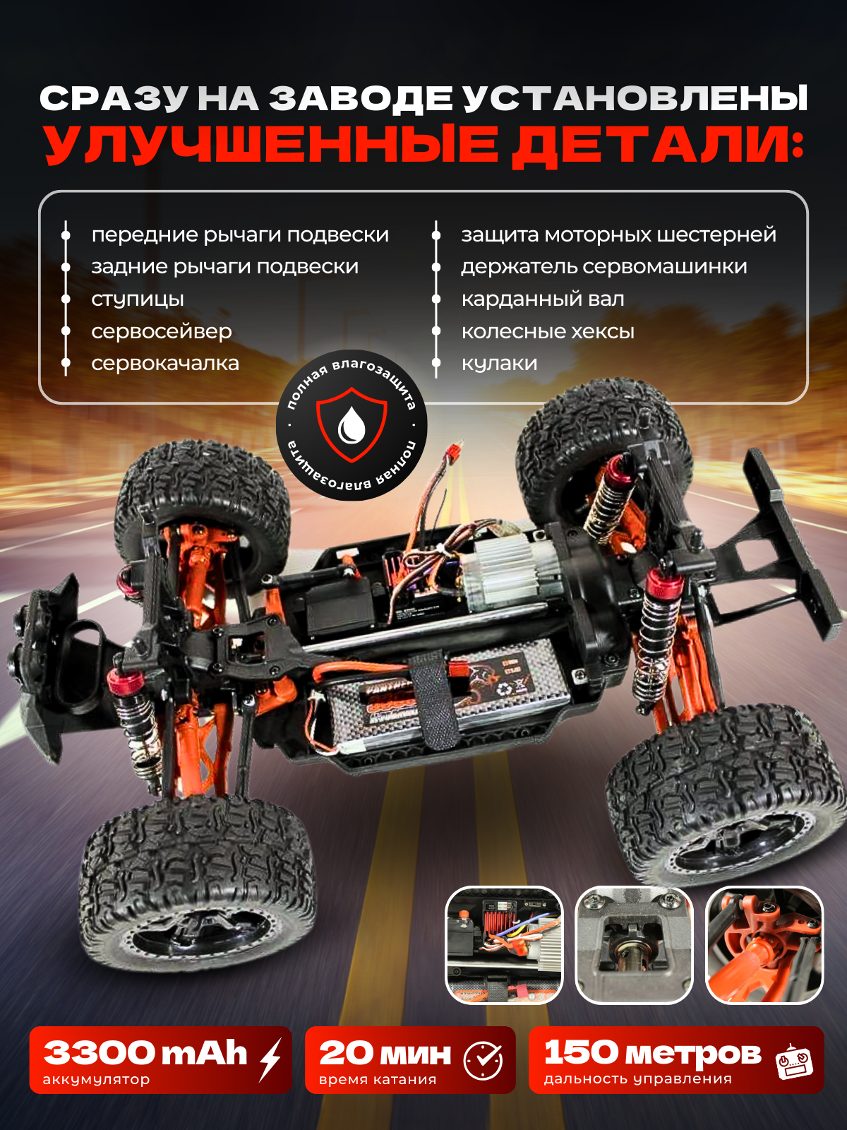 | Подробная комплектация | монстр-трак, пульт, аккумулятор 3300 mAh 7.4 V, зарядка, инструкция |