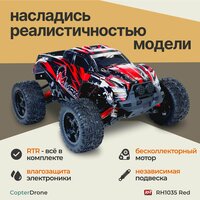 Радиоуправляемая машинка Remo Hobby RH1035 M Maxx – это отличная игрушка для ребенка и взрослого. Модель на радиоуправлении имеет полный привод, металлическую трансмиссию и полную влагозащиту. Автомобиль выполнен в масштабе 1:10. Полный привод повышает проходимость и управляемость модели. На автомобиле установлены бесколлекторный двигатель и влагозащищенный приемник 3 в 1. Мощный аккумулятор Li-Po 7.4V 3300 mah, идущий в комплекте, придаст модели большую мощность! Пульт управления на частоте 2.4Ghz позволит управлять моделью на расстоянии до 150 метров. Автомодели Remo Hobby производятся с использованием закаленной крепкой стали, пластика и резины. В их комплект входит все необходимое для того чтобы быстро начать их использовать. Подарите своему ребенку счастье – радиоуправляемую модель REMO HOBBY.