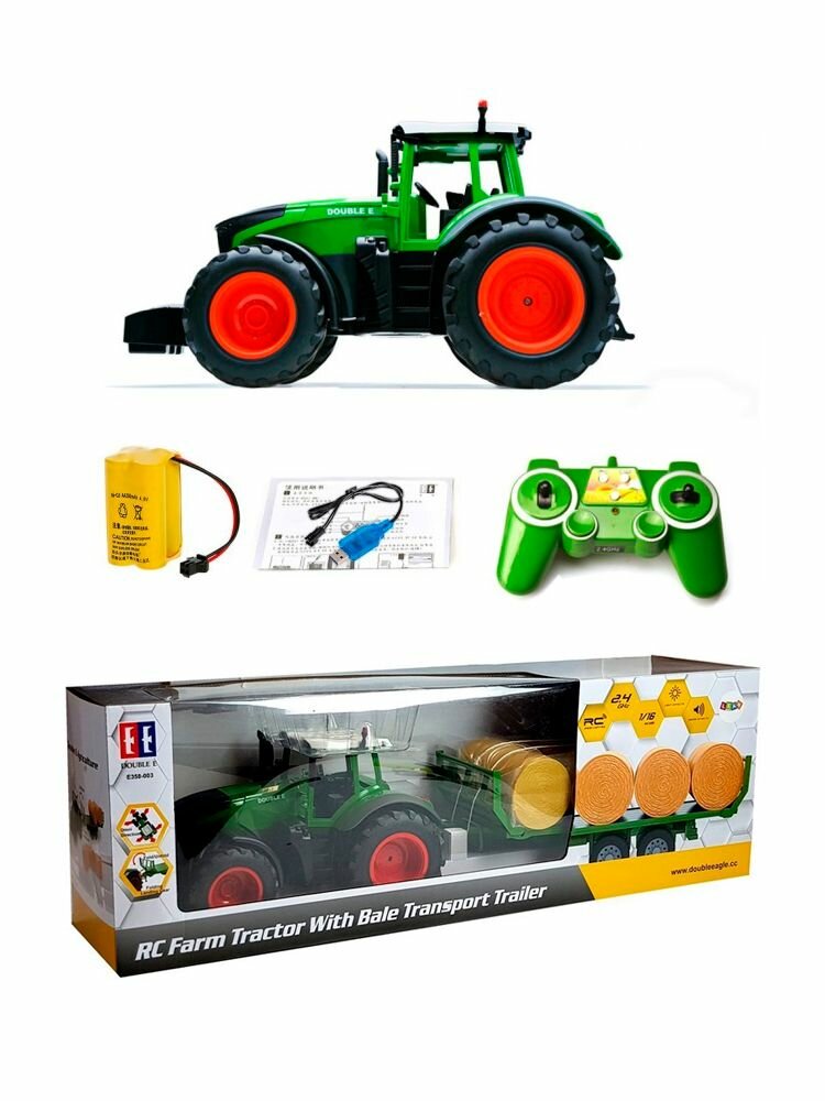 Купить Радиоуправляемый сельскохозяйственный трактор Double Eagle с прицепом с рулонами сена 1/16 2.4G RTR — E358-003 с доставкой по всей России.