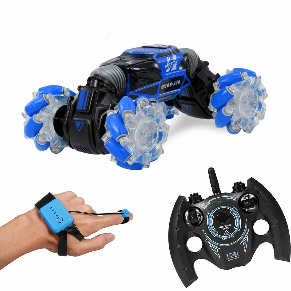 Радиоуправляемый внедорожник Твистер (часы + пульт) 1:16 - UD2196A-BLUE - это машинка перевертыш Hyper Skidding, которая является несомненным хитом продаж среди радиоуправляемых моделей. Обновленная версия стала еще лучше. О такой машинке мечтает каждый мальчик. Возможности машинки Hyper Skidding просто невероятны. Она может ездить, крутиться на месте, переворачиваться и ехать дальше, приподниматься и даже танцевать. Но главная особенность заключается в управлении. Данной машинкой можно управлять жестами при помощи специального браслета, который входит в комплект с машинкой Hyper Skidding. Увлекательный процесс управления понравится не только детям, но и взрослым. И все это будет сопровождаться звуками работающего мотора, яркой подсветкой колес и песнями. Особенно эффектно машинка смотрится в темноте.