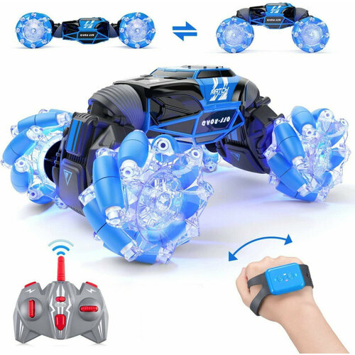 Контроль жестами: в комплект входит дополнительный пульт, который фиксируются на ладони. Благодаря ему вы сможете управлять вездеходом лёгкими жестами одной руки. При этом вы сможете управлять не только направлением движения, но и изменять высоту подвески машины и делать трюки.