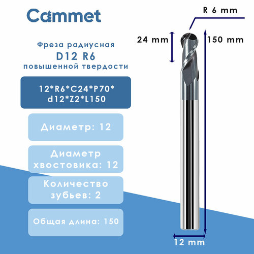 Купить Твердосплавная фреза радиусная D12*R6*C24*P70*d12*Z2*L150 сферическая по стали монолитная 70HRC с доставкой по всей России.