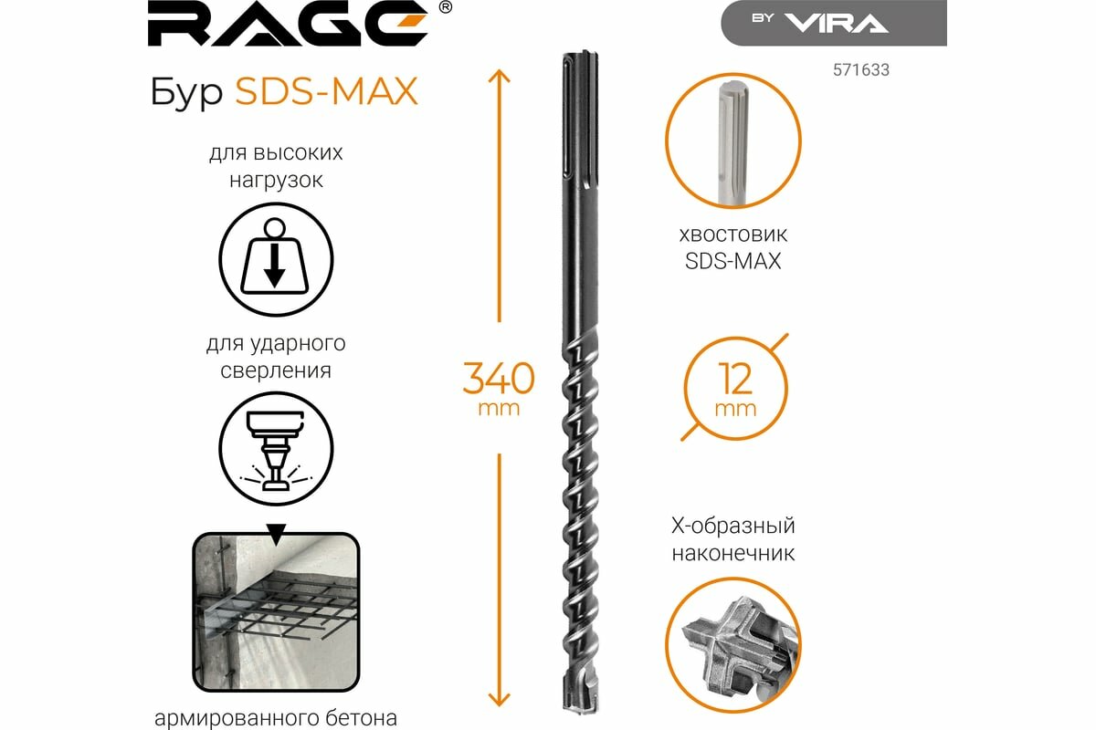 Купить Бур по бетону SDS-max, 12×340 мм, Quadro-X rage by VIRA 571633 с доставкой по всей России. Бур по бетону SDS-max, 12×340 мм, Quadro-X rage by VIRA 571633: сравнение цен, характеристики, фото, актуальное наличие и цены.