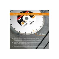 Диск алмазный сегментный HQ 230 мм VIRA RAGE 601230 предназначен для угловых шлифовальных машин. Применяется для сухого реза бетона, мрамора, гранита, кирпича, тротуарной плитки и бордюрного камня. Высота алмазного слоя - 2.5 мм.