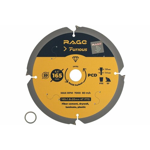 Диск пильный по фиброцементу 165×20 мм, Z4 RAGE Furious 594365: сравнение цен, характеристики, фото, актуальное наличие и цены.